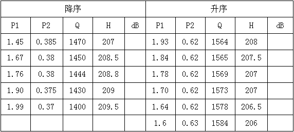 測試參數(shù):P1-進口壓力(MPa)、P2-出口壓力(Mpa)、Q-流量(m3/h)、H-主閥拉桿運行開度(mm)